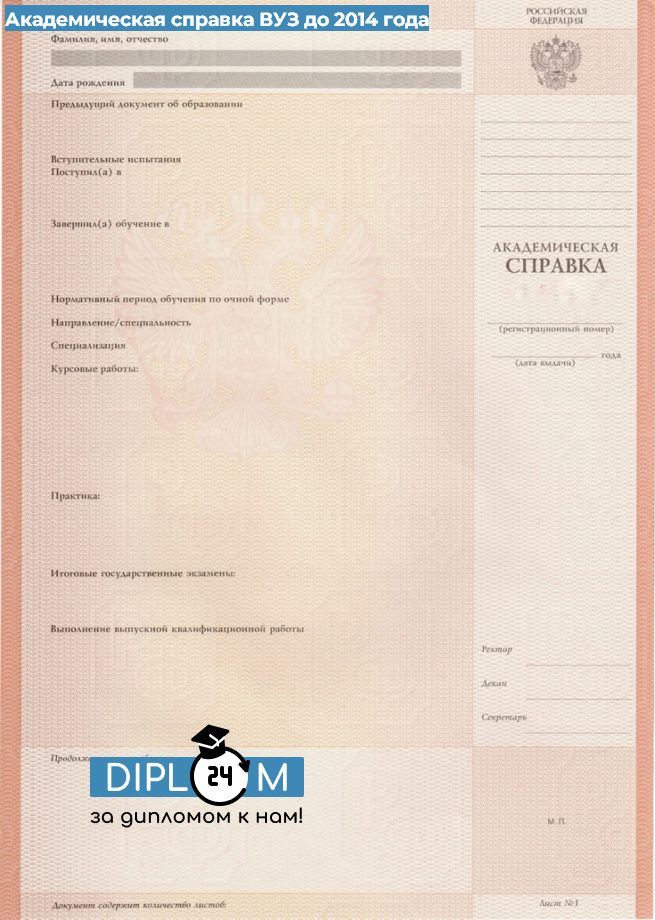 Академическая справка ВУЗ до 2014 года