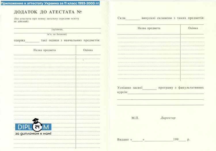 Аттестат 11 классов Украины 1993-2000 гг.