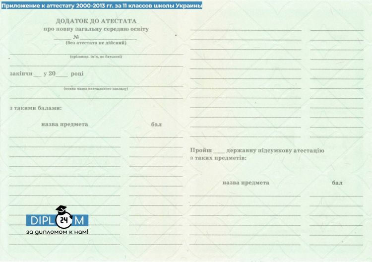 Аттестат 11 классов Украины 2000-2013 гг.