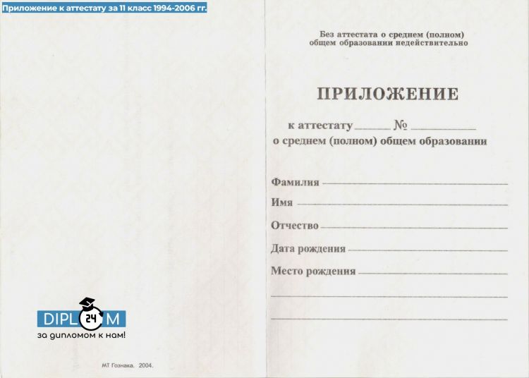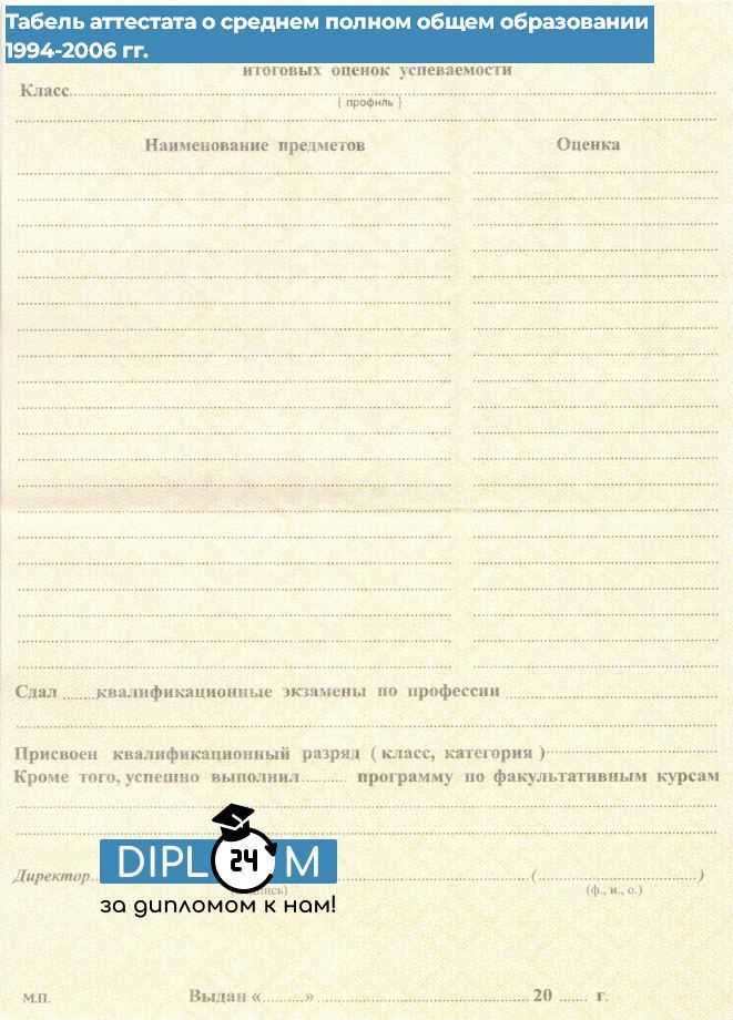 Аттестат школы 11 класс 1994-2006 гг.