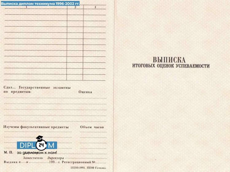 Диплом ПТУ (Училища) 1996-2002 гг.