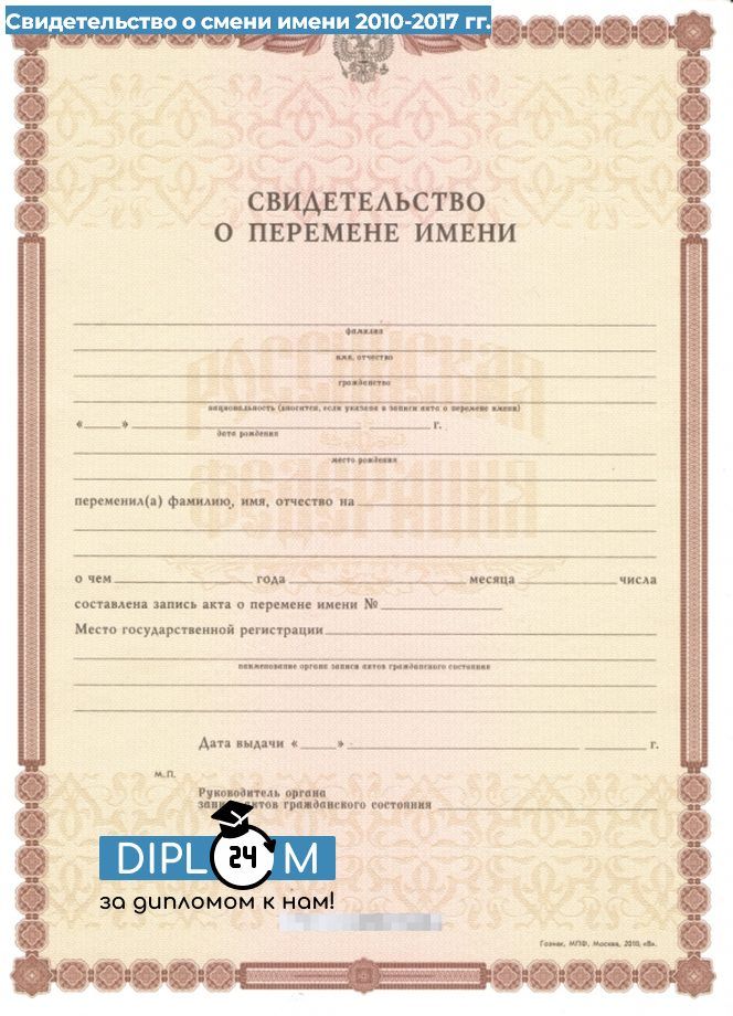 Свидетельство о перемени имени 2010-2017 гг.