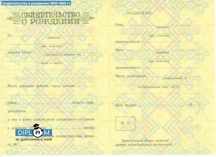 Свидетельство о рождении СССР 1950-1969 гг.